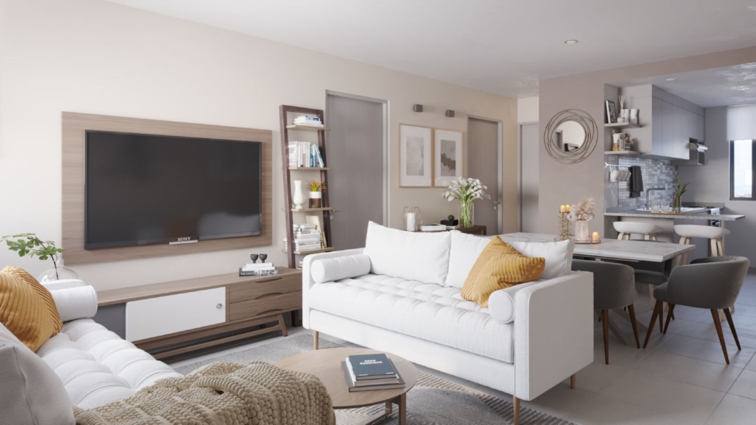 Cada departamento mide 64.64m2 y ofrecen 2 recamaras, 1 o 2 cajones de estacionamiento a elegir